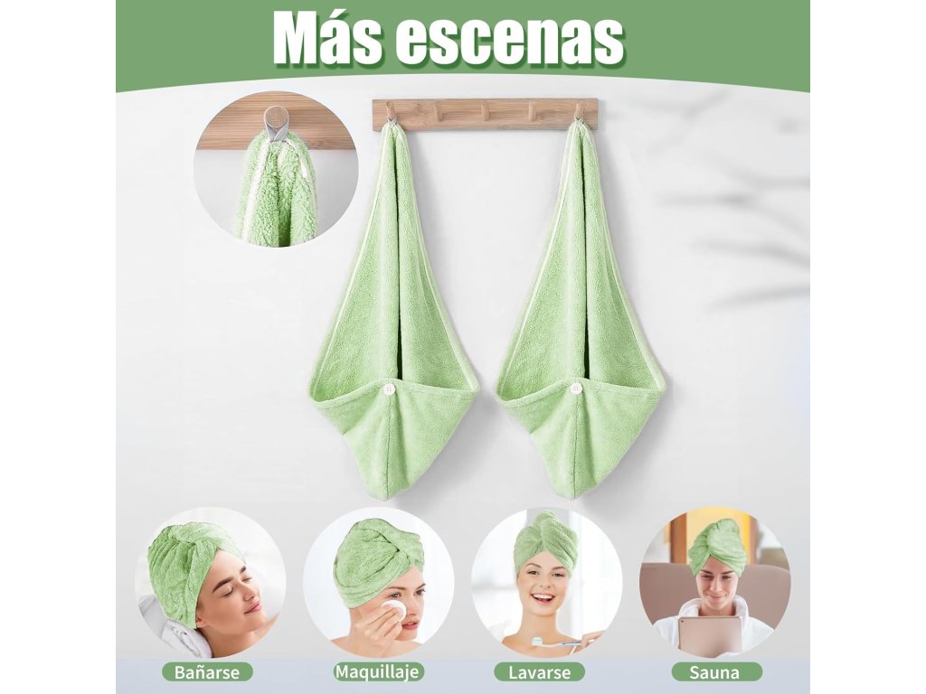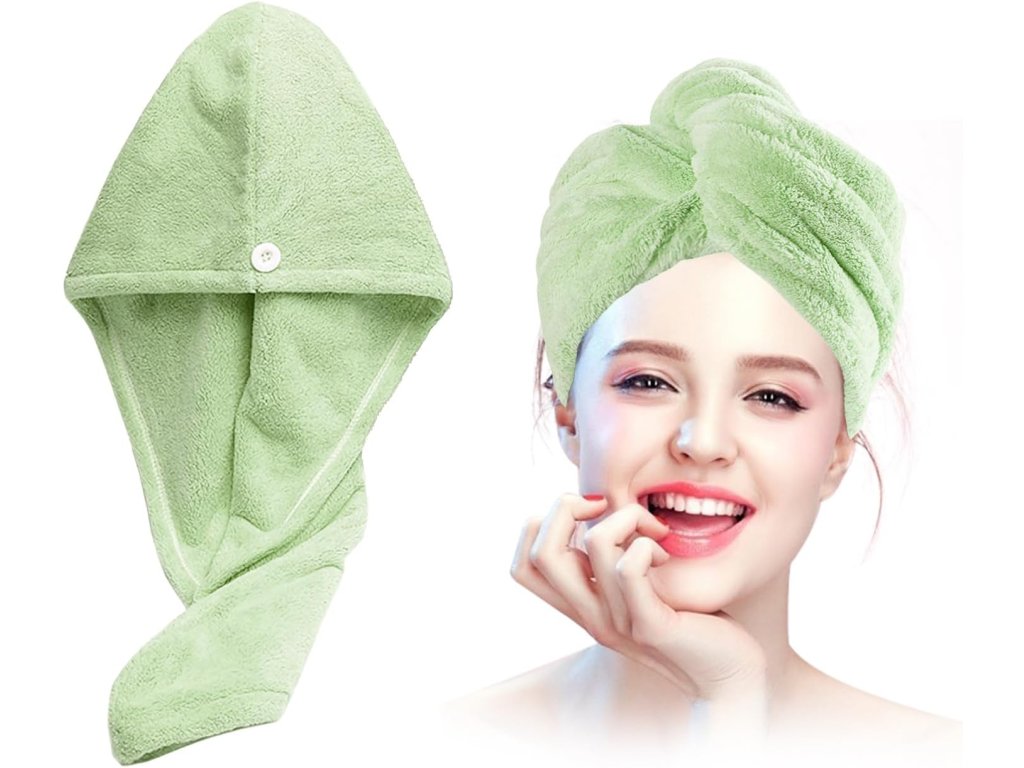 Sada 2 mikrovláknových turbanů na vlasy se zapínáním Zelená