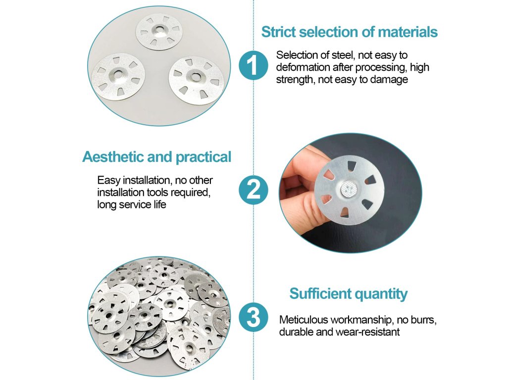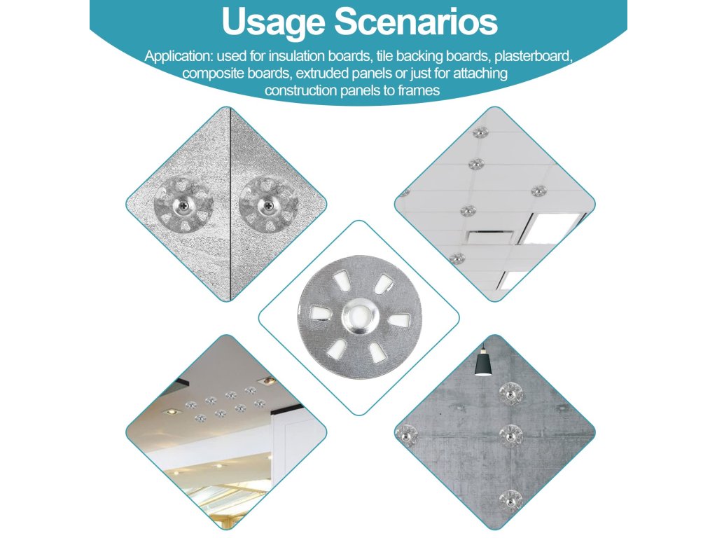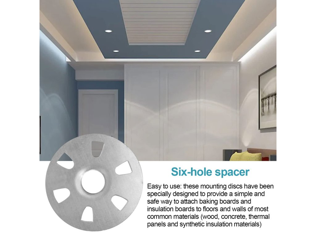 Snadné použití: Montážní disky jsou speciálně navrženy tak, aby poskytovaly jednoduchý a bezpečný způsob upevnění podkladových desek a izolačních desek na podlahy a stěny z většiny běžných materiálů. Jejich instalace je intuitivní a efektivní.