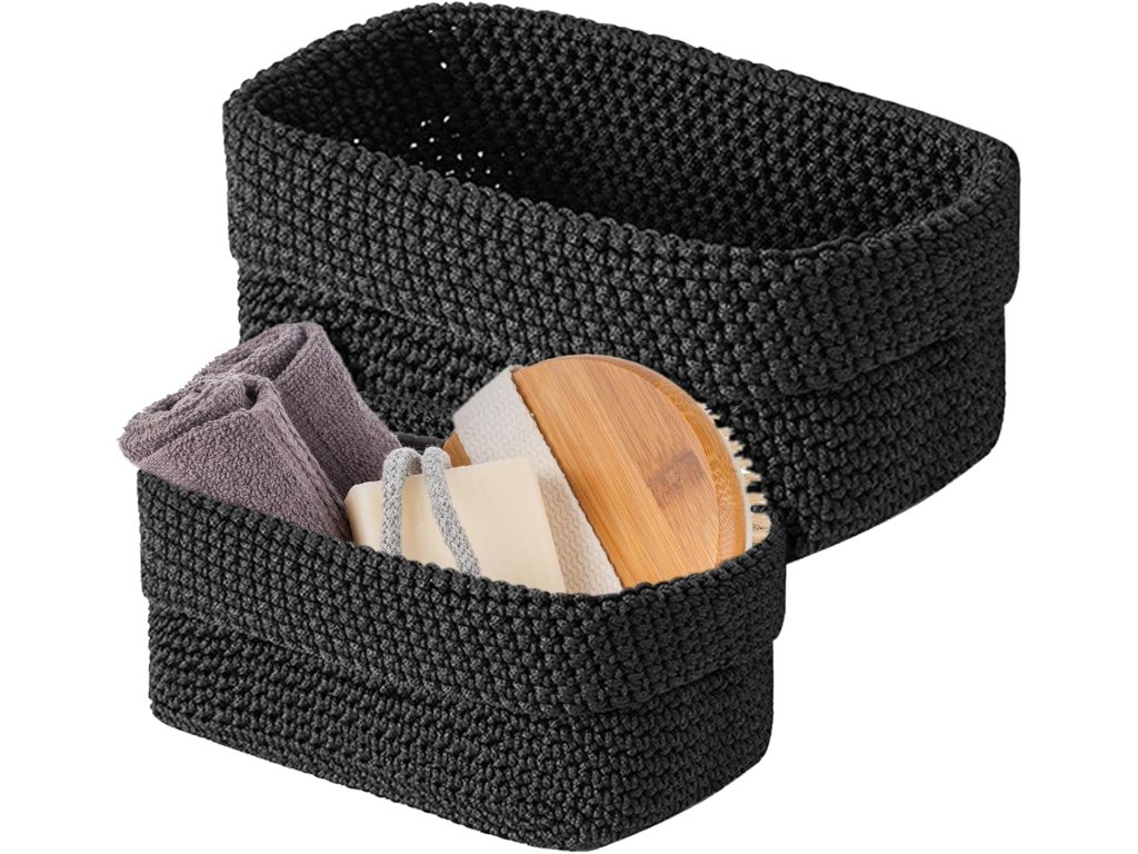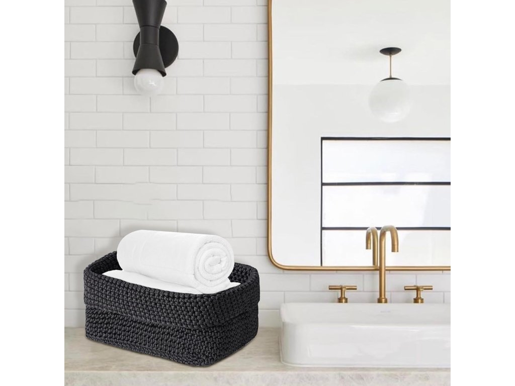 Úložné košíky jsou vyrobeny z bavlněného provazu, což jim dodává přirozený vzhled a zajišťuje měkkou texturu, která je bezpečná pro nábytek i jemné předměty. Díky čtvercovému designu umožňují efektivní využití prostoru na policích, v regálech nebo v koupelně pro uskladnění kosmetiky a ručníků. Košíky jsou odolné pro každodenní používání a v případě potřeby je lze snadno složit, což usnadňuje jejich skladování. Jsou vhodné pro organizaci hraček, kancelářských potřeb, klíčů nebo doplňků v obývacím pokoji.