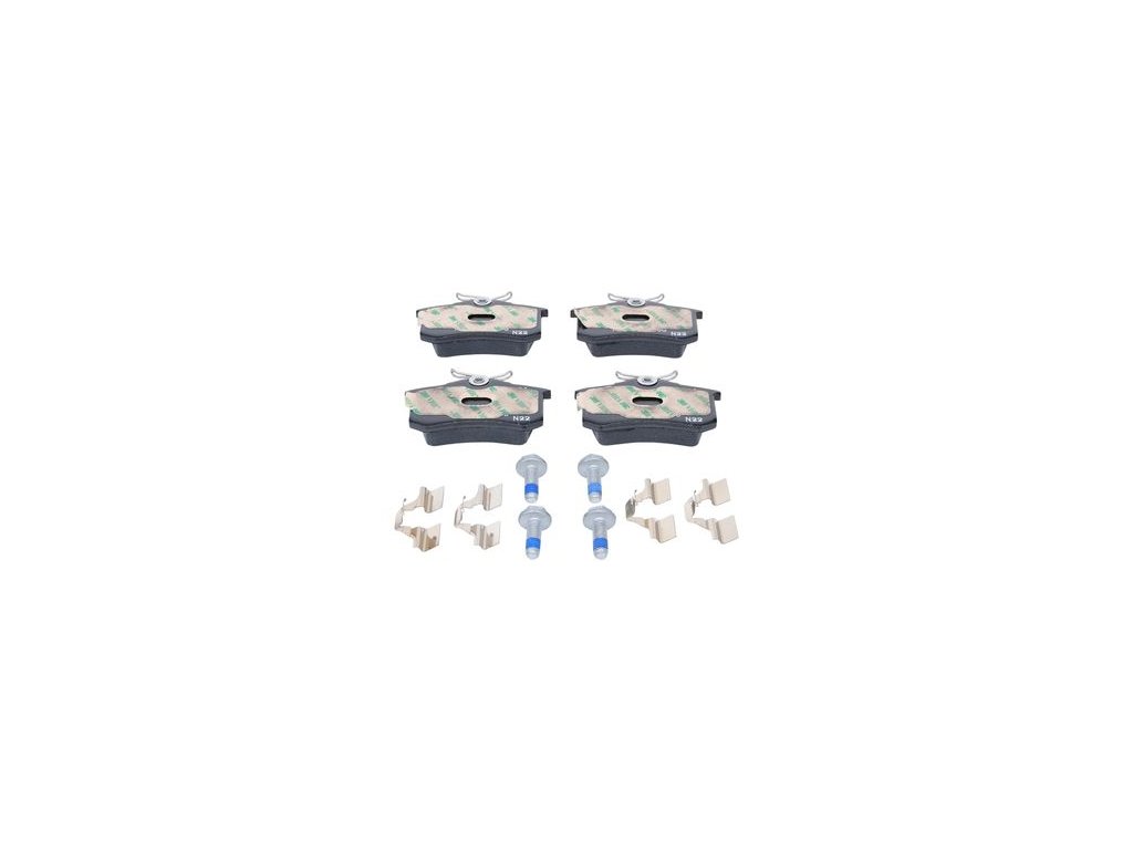 Pro snadnou a kompletní výměnu sada obsahuje potřebné příslušenství a 4 šrouby třmenů. Destičky nemají integrovaný výstražný kontakt opotřebení.