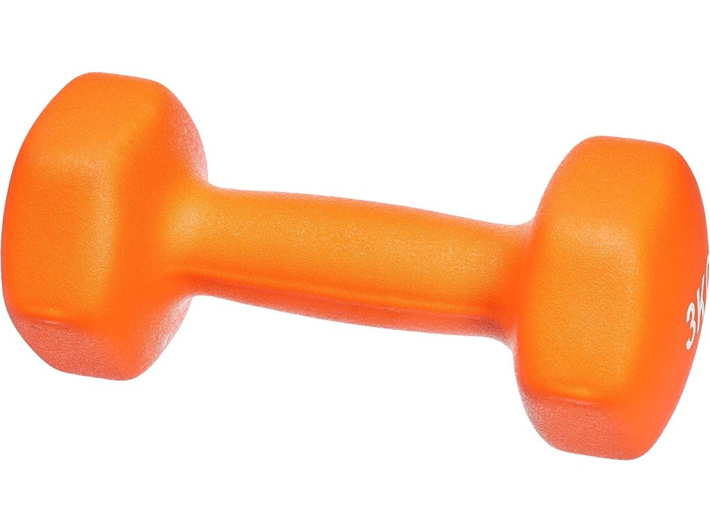 Sada 2 kusů litinových činek s neoprenovou úpravou pro odporové cvičení. Každá činka váží 3 kg. Jsou ideální pro fitness lekce nebo domácí trénink. Neoprenový povrch zajišťuje bezpečný a protiskluzový úchop a hexagonální tvar zabraňuje nežádoucímu kutálení. Činky v oranžové barvě mají vytištěnou váhu pro rychlou identifikaci.