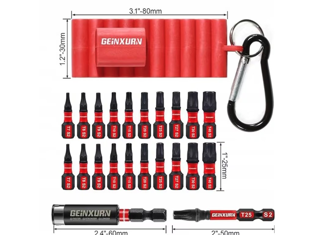 Bity jsou v sadě přehledně seřazeny a každý z nich nese jasné označení velikosti pro okamžitou identifikaci během práce. Součástí balení je kompaktní a robustní organizér, který chrání nástroje před poškozením a ztrátou. Tato sestava je vhodná pro širokou škálu aplikací od montáží v dílně až po náročné stavební úkony, kde je kladen důraz na spolehlivost a precizní usazení v hlavě šroubu.