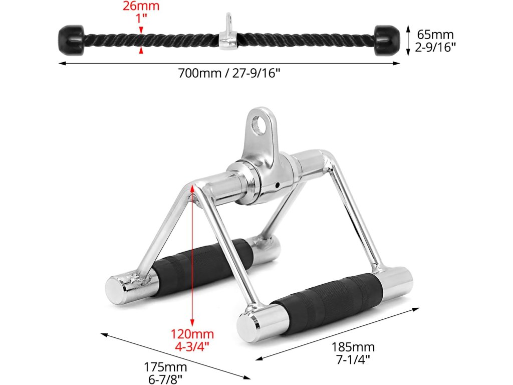 Všestranné využití pro více svalových skupin: Tato sada je ideální pro řadu cvičení, včetně sedavého veslování a tréninku zad, ramen, předloktí, tricepsů a bicepsů. Kombinace V-rukojeti a tricepsového lana vám umožní obohatit váš trénink a zaměřit se na různé svalové partie s maximální efektivitou.