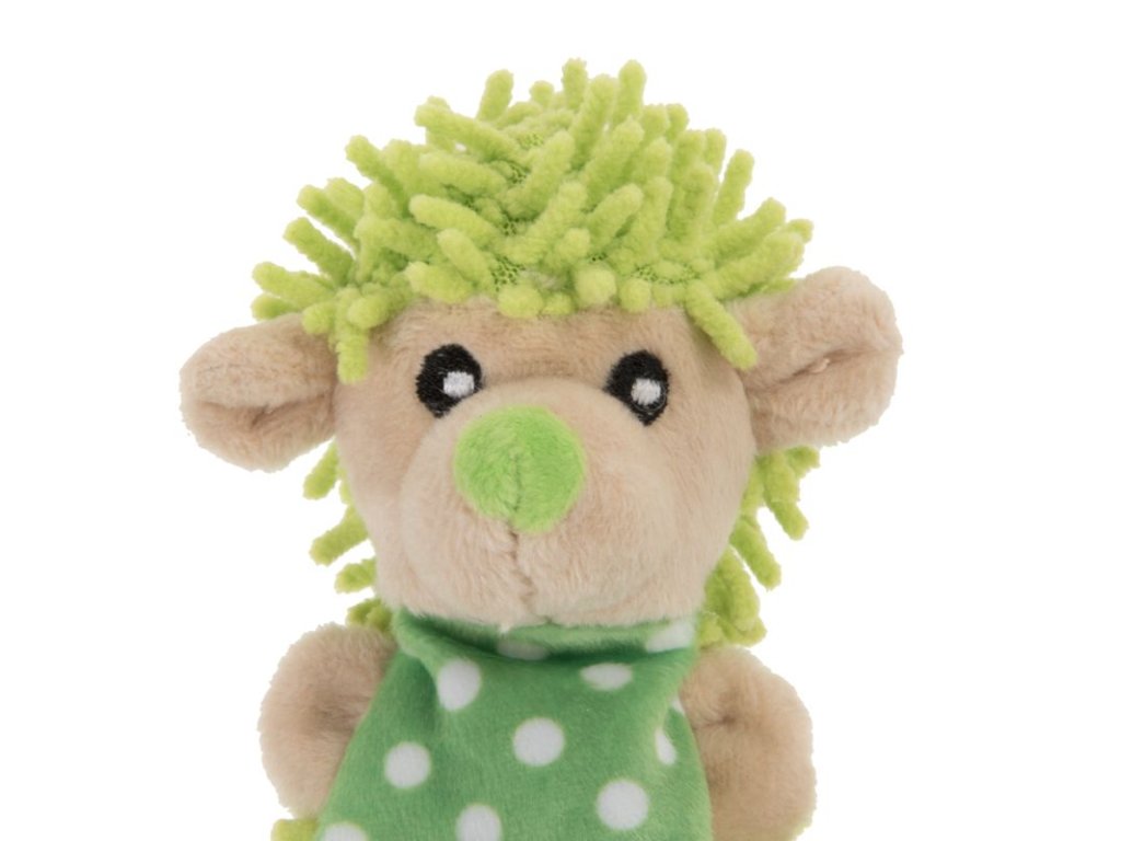 Moppi hračka pro kočky ve tvaru zeleného ježka o rozměrech 12 x 7 x 4 cm je plyšová hračka vyplněná kočičí mátou a šustící fólií, doplněná třásněmi z mikroflísu. Lze ji prát v pračce na 30°C.