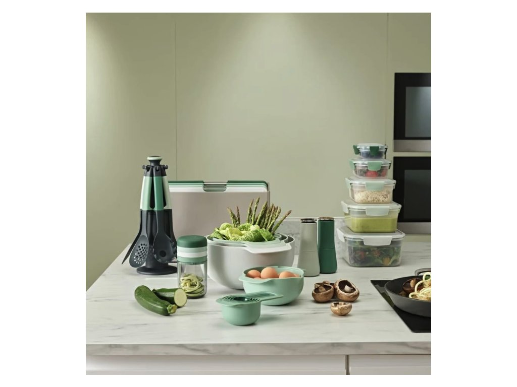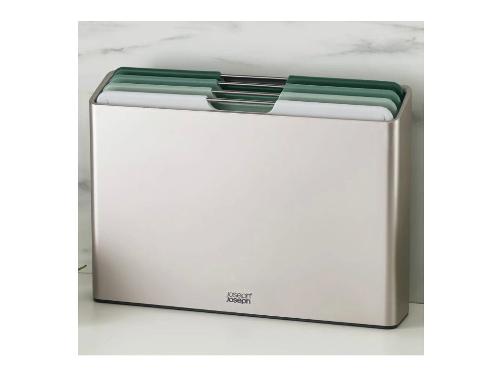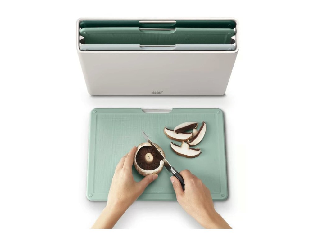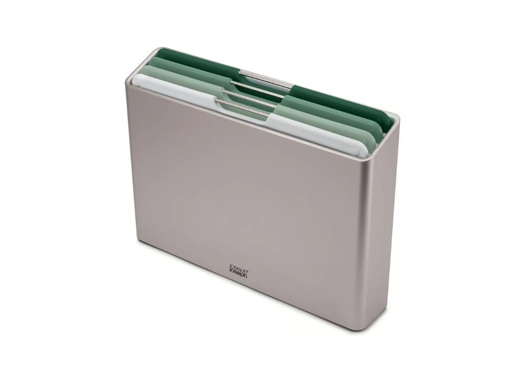 Sada prkének Joseph Joseph Folio je praktickým a stylovým doplňkem do každé kuchyně. Každé ze čtyř prkének je v jiné barvě a slouží pro různé druhy potravin, což zabraňuje křížové kontaminaci. Prkénka mají nerezové úchytky pro snadnou manipulaci a texturovaný protiskluzový povrch, který je zároveň šetrný k ostří nožů. Stojan zajišťuje cirkulaci vzduchu mezi prkénky a má protiskluzové nožičky pro stabilitu.