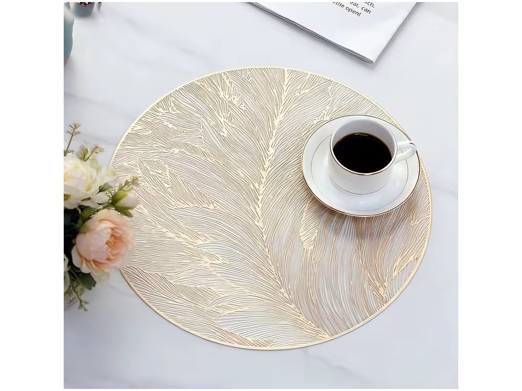 Sada kulatých PVC podložek na stůl zlatý listový design 6 kusů
