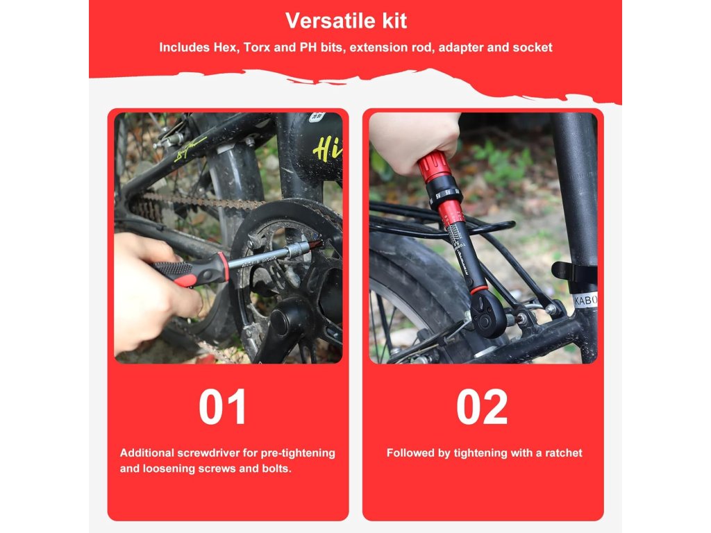 Sada je vhodná pro údržbu jízdních kol, montáž komponentů, práci na motocyklech, automobilech, montáž zařízení i další technické aplikace, kde je kladen důraz na přesné dotažení spojů.