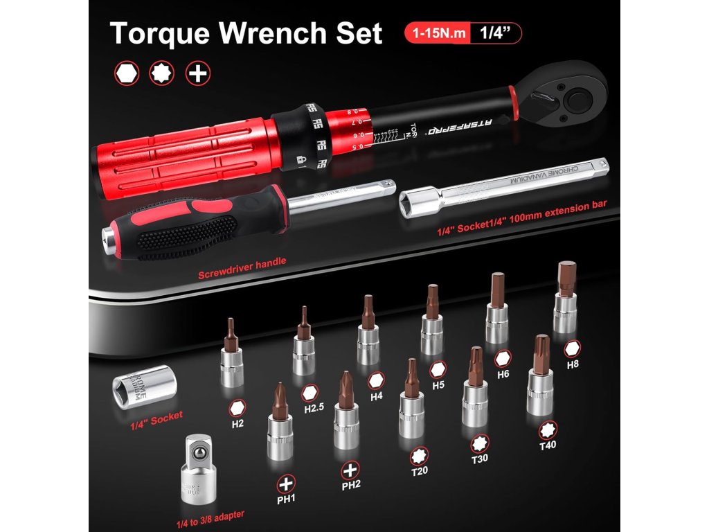 ATsafe momentový klíč 1/4" 1–15 Nm, sada 17 dílu
