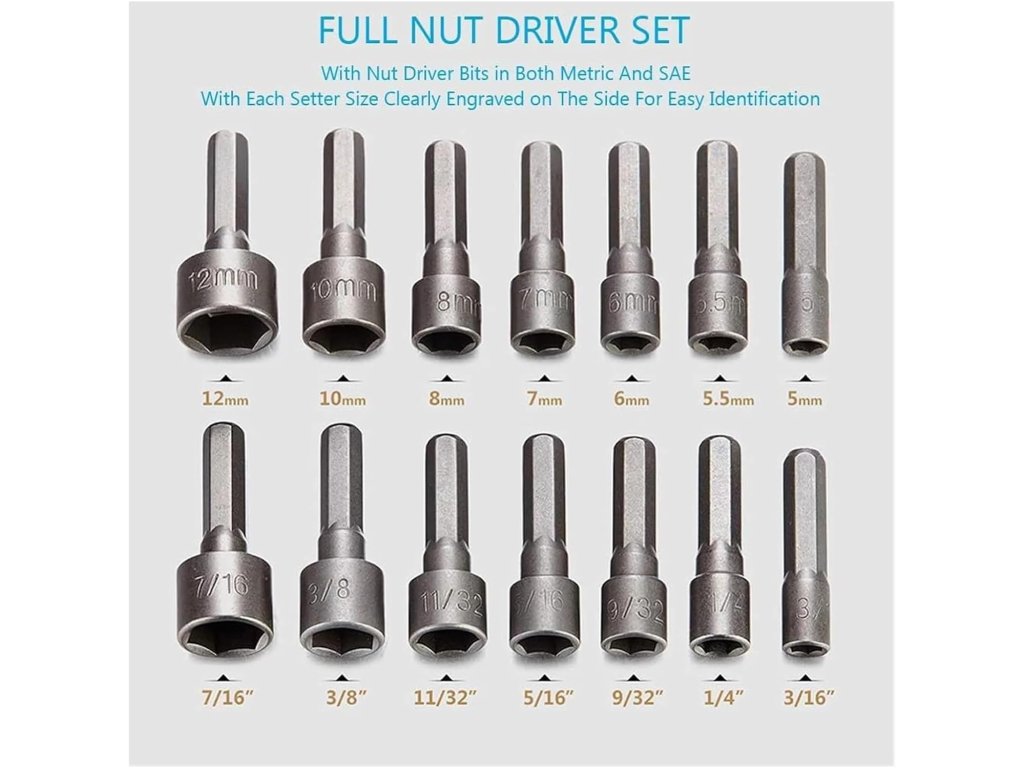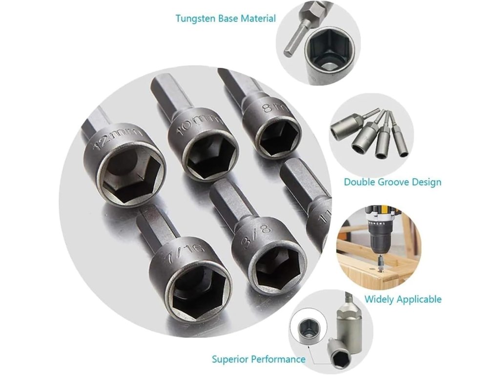 Hlavice jsou navrženy pro rychlou výměnu v rychloupínacích sklíčidlech a pevné uzamčení v držácích bitů. Sada je vhodná pro instalaci do pneumatických a elektrických šroubováků, ručních vrtaček, rázových utahováků i klasických manuálních šroubováků s výměnnými bity. Díky preciznímu zpracování nástavce přesně dosedají na matice a hlavy šroubů, čímž se minimalizuje riziko jejich stržení. Souprava představuje nezbytnou výbavu pro opravářské práce, montáž nábytku nebo údržbu v dílně i domácnosti.