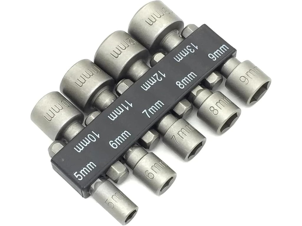 Praktická sada obsahuje devět nástrčných hlavic v metrických rozměrech od 5 mm do 13 mm. Jednotlivé nástavce jsou vyrobeny z vysoce kvalitní chrom-vanadiové oceli (Cr-V), která zajišťuje vysokou odolnost proti opotřebení, oděru a dlouhou životnost i při častém používání. Každý kus je opatřen standardní šestihrannou stopkou o velikosti 1/4 palce, což zaručuje plnou kompatibilitu s širokou škálou nářadí.