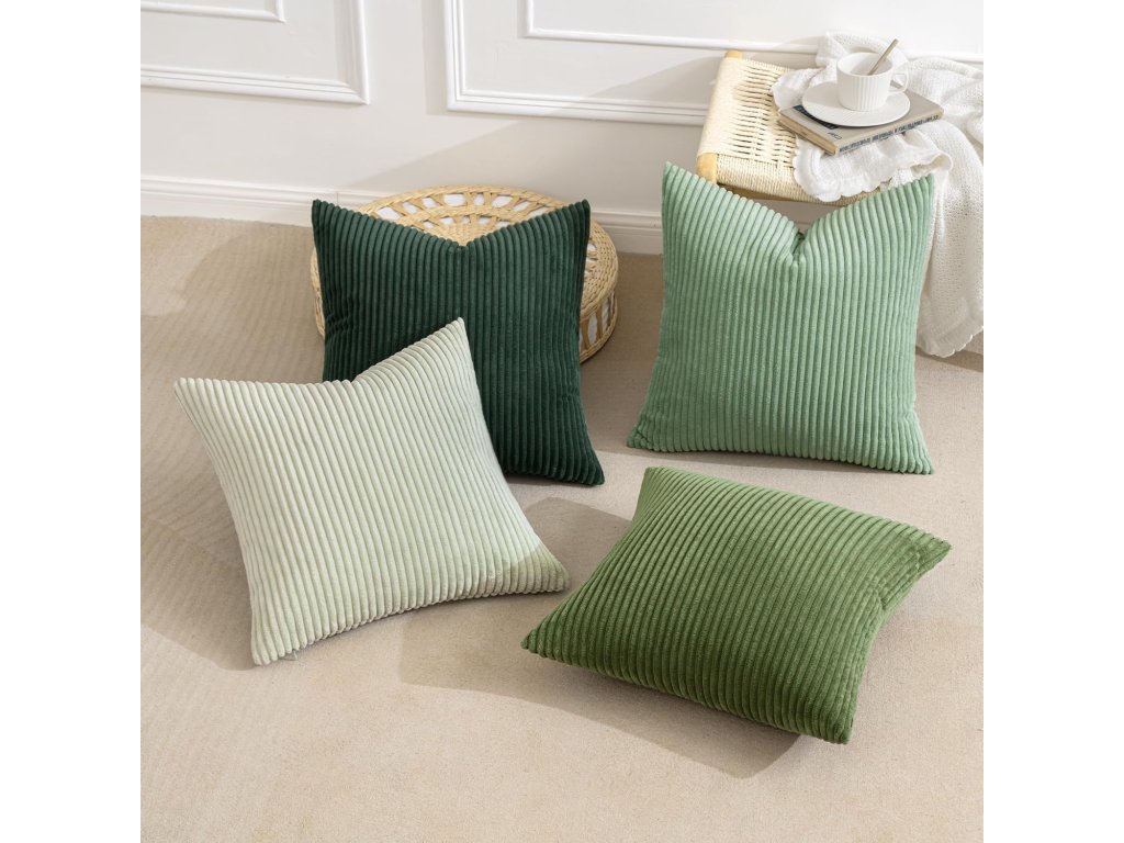 Sada čtyř povlaků na polštáře MIULEE z jemného manšestru v sytých barvách (Forest Green Series) je ideální pro oživení vašeho interiéru. Povlaky o rozměru 50 x 50 cm jsou vyrobeny z měkkého a odolného materiálu a lze je snadno prát v pračce. Jejich design se skvěle hodí do obývacího pokoje, ložnice, kanceláře nebo auta.