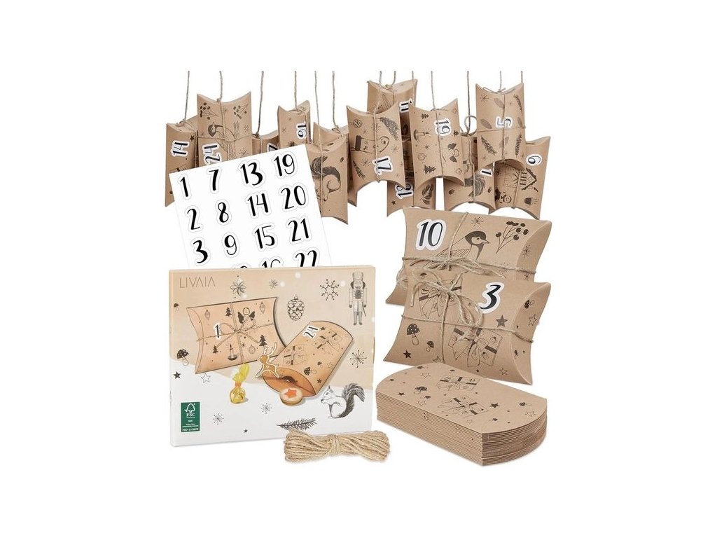 Sada LIVAIA vám dává volnost a kreativitu při tvorbě adventního kalendáře přesně podle vašich představ. Můžete si vybrat, jaké překvapení do kterého sáčku vložíte, a vytvořit tak osobní a jedinečný dárek.