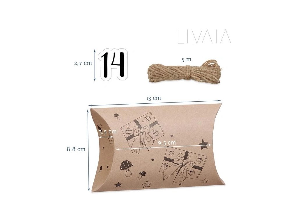 Vytvořte si svůj vlastní originální adventní kalendář pro rok 2024 s DIY sadou od LIVAIA! Tato sada obsahuje malé hnědé papírové sáčky s vánočními motivy a samolepky s čísly od 1 do 24, takže si můžete sami rozhodnout, jaké překvapení ukryjete pro své blízké nebo pro sebe každý den až do Vánoc.
