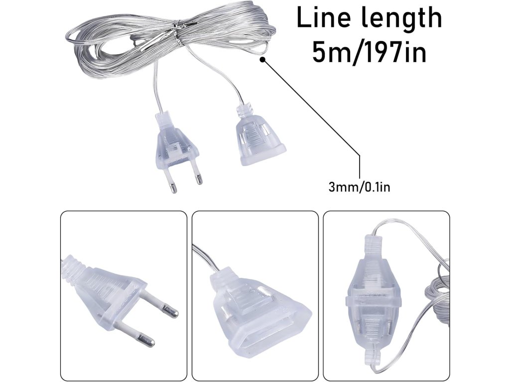 Kabely jsou vyrobeny z vysoce kvalitního PVC materiálu, který zajišťuje odolnost, bezpečnost a stabilní přenos energie. Díky ultratenkému designu jsou kabely snadno schovatelné. Jsou vhodné především pro dekorativní osvětlení s nízkou spotřebou, jako jsou LED světelné řetězy nebo stolní lampy.