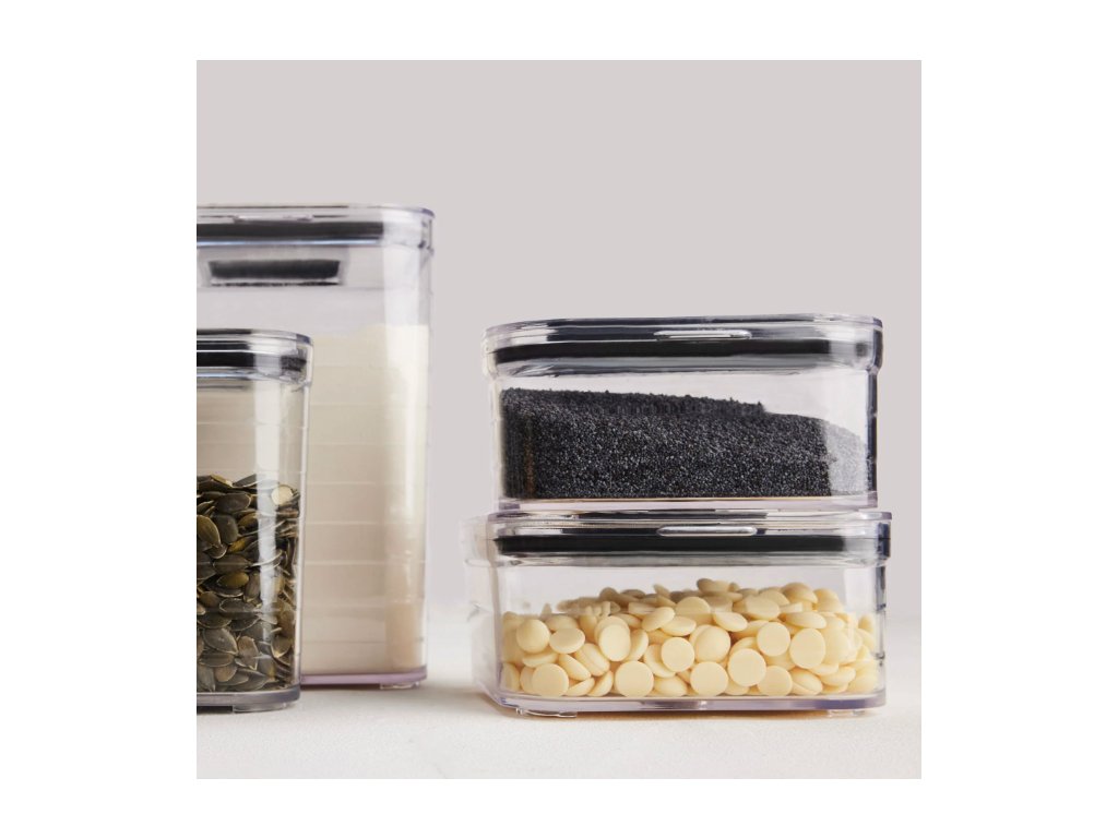 Dóza je navržena tak, aby maximalizovala přehlednost a uspořádání ve vaší kuchyni. Je vyrobena z plně transparentního plastu PCTG, který je bio-založený, bez BPA a bez zápachu, takže vždy vidíte obsah z boku i shora. Její robustní a nárazuvzdorné provedení zajišťuje dlouhou životnost. Design s oblými tvary, inspirovaný litinovými hrnci, obsahuje také stupňovité přechody, které zvyšují stabilitu při stohování.