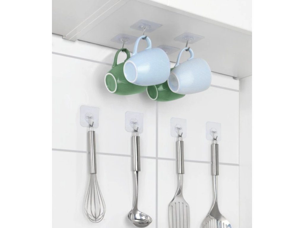 Praktická sada 30 samolepicích háčků. Vyrobeny z odolné nerezové oceli a s průhledným designem, takže nenaruší vzhled vaší koupelny či jiného prostoru. Snadná instalace bez vrtání. Rozměry jednoho háčku jsou 2 x 6 x 6 cm. Ideální pro zavěšení ručníků, utěrek, kuchyňského náčiní a dalších lehkých předmětů.