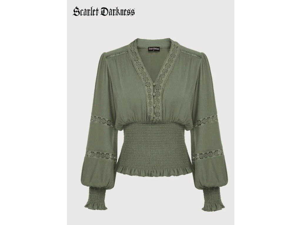 Scarlet Darkness dámská bavlněná halenka se řaseným pasem olivově zelená XL