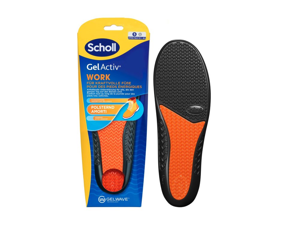 Vložky scholl gelactiv work jsou speciálně vyvinuty pro ženy, které tráví většinu pracovního dne na nohou. poskytují trvalou oporu a jsou tvarovány tak, aby perfektně seděly do pracovní obuvi i bot s tvrdou podrážkou.