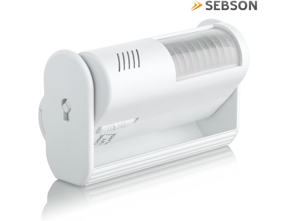Tato sada obsahuje 2 senzory pohybu SEBSON, které nabízejí dvě funkce: alarm a zvonek. Pokud senzor po 30 sekundách detekuje pohyb v dosahu 8 metrů a úhlu 60° (v otevřeném prostoru), spustí se alarm na přibližně 15 sekund. V režimu zvonku senzor při detekci pohybu dvakrát krátce zazvoní. Samotné tělo senzoru je otočné o 360° na svém držáku, což umožňuje flexibilní nastavení detekční zóny. Napájení je zajištěno bateriemi. V balení naleznete 2 senzory pohybu SEBSON, 4 montážní šrouby a 4 hmoždinky Ø6mm.