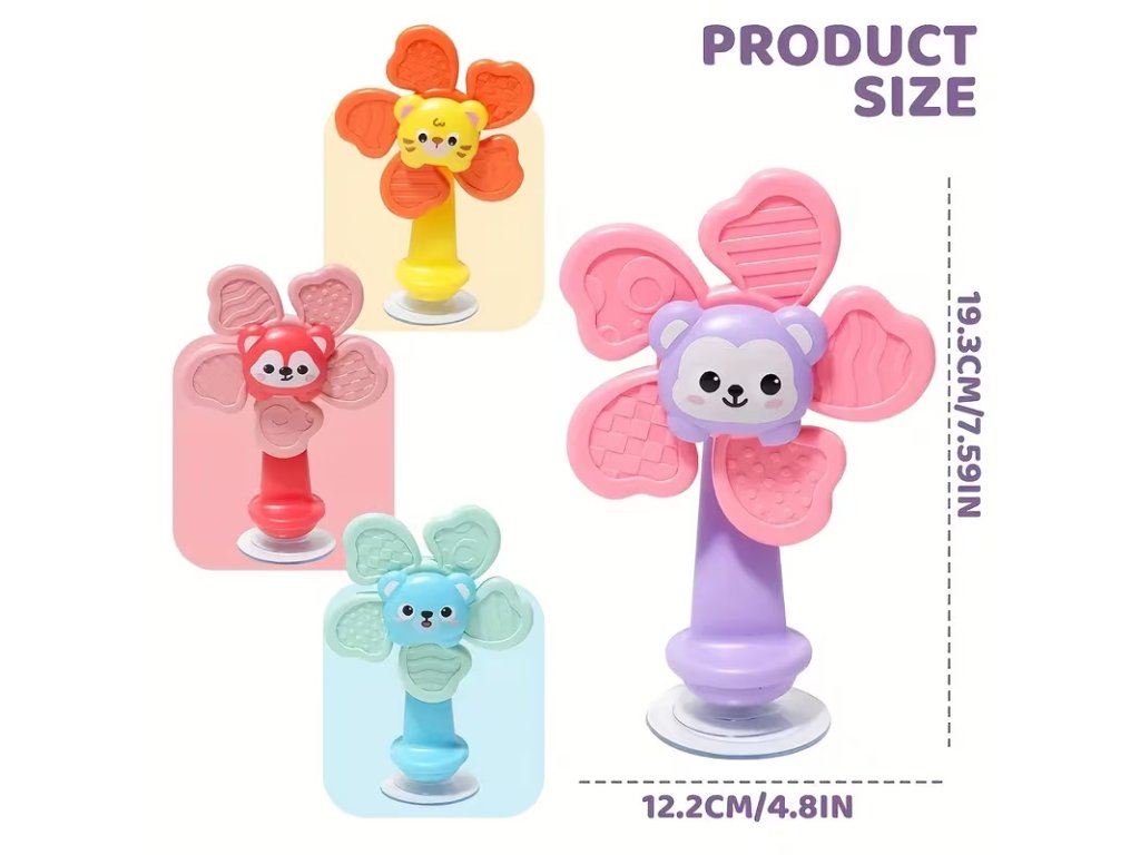 Hračka je vybavena pevnou přísavkou, která umožňuje stabilní upevnění na hladké povrchy, jako jsou jídelní židličky, stoly nebo vana. Tato funkce podporuje samostatnou hru a rozvoj koordinace ruka-oko, zatímco různorodé textury na povrchu hračky poskytují bohatou hmatovou stimulaci. Barevné provedení a hravý design s motivem zvířátka působí na děti povzbudivě a dělají z hračky i vhodný dárek pro různé příležitosti.