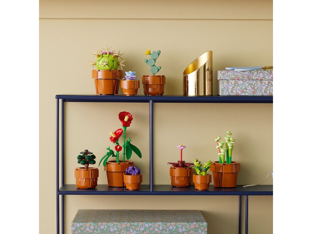 LEGO® Botanicals 10329 Miniaturní rostliny – Sestavitelný bytový doplněk pro dospělé s 9 modely suchozemských, tropických a masožravých rostlin v terakotových květináčích z kostek. 758 dílků, věk 18+.