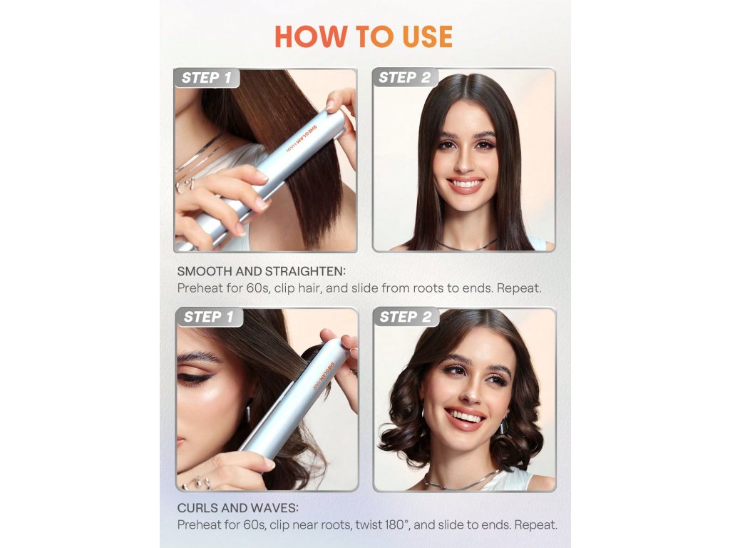 S touto žehličkou si můžete vytvořit hladký účes bez krepatění a zauzlování. Díky své kompaktní velikosti a EU C typu zástrčce (220–240 V) je perfektním společníkem pro cestování. Její unikátní povlak zajišťuje šetrnou péči o vlasy, takže i po častém používání budou vaše vlasy vypadat zdravě a krásně.