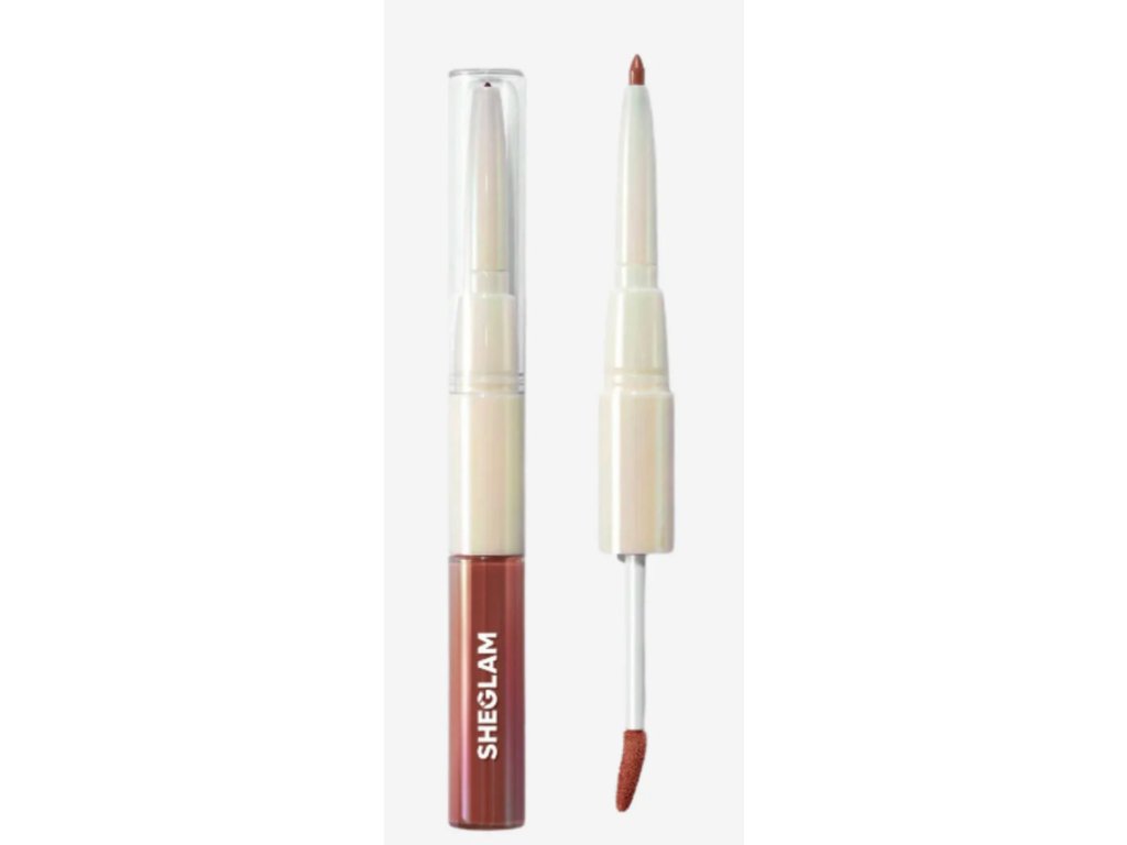 Oboustranná pomůcka od značky Sheglam nabízí kompletní řešení pro líčení rtů. Jedna strana obsahuje vysunovací konturovací tužku s tenkým hrotem, která dovoluje přesné definování linií a zabraňuje rozpíjení barvy. Druhá strana je opatřena tekutou rtěnkou s aplikátorem, který rovnoměrně nanáší sytý pigment po celé ploše rtů.