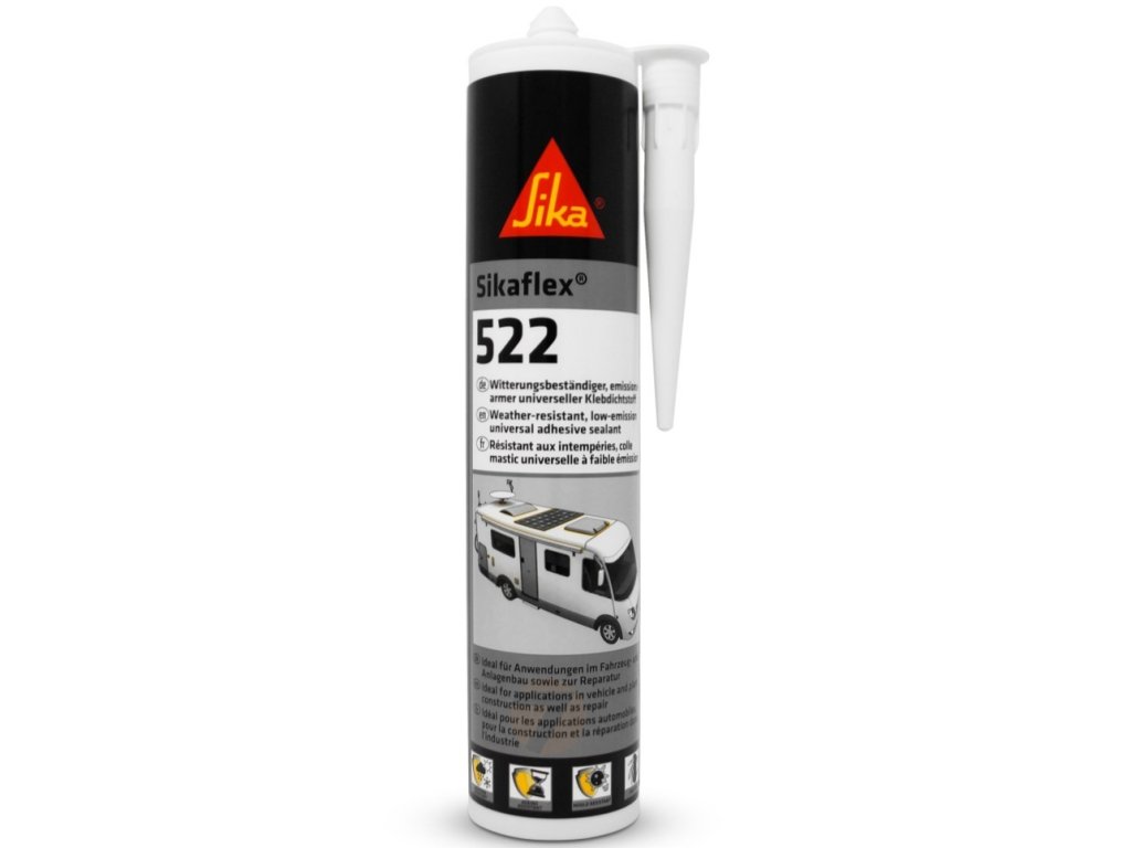 SikaFlex 522 je univerzální jednokomponentní lepicí a těsnicí tmel na bázi epoxidových pryskyřic, dostupný v bílé barvě (300 ml). Je nástupcem tmelu Sikaflex 221i a nabízí vysokou odolnost proti stárnutí, povětrnostním vlivům, plísním a UV záření. Má nízké emise, dobrou přilnavost k mnoha podkladům bez předúpravy a je bez isokyanátů, rozpouštědel, ftalátů a silikonů. Je vhodný pro lepení a těsnění v interiéru i exteriéru, včetně karavanů, a splňuje hygienické normy pro ventilační systémy a styk s potravinami.