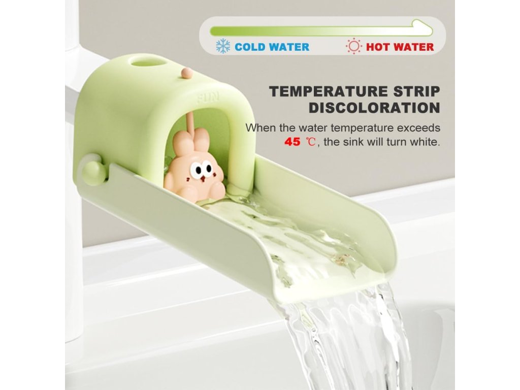 Silikonový prodlužovač vodovodního kohoutku REESOOM v roztomilém kresleném designu je určený pro děti. Je vyroben z potravinářského silikonu a nabízí funkci změny barvy při vysoké teplotě, aby se zabránilo opaření. Délku a směr proudu vody lze nastavit, což umožňuje dětem snadno a samostatně umýt ruce. Instalace je rychlá a bez použití nářadí.