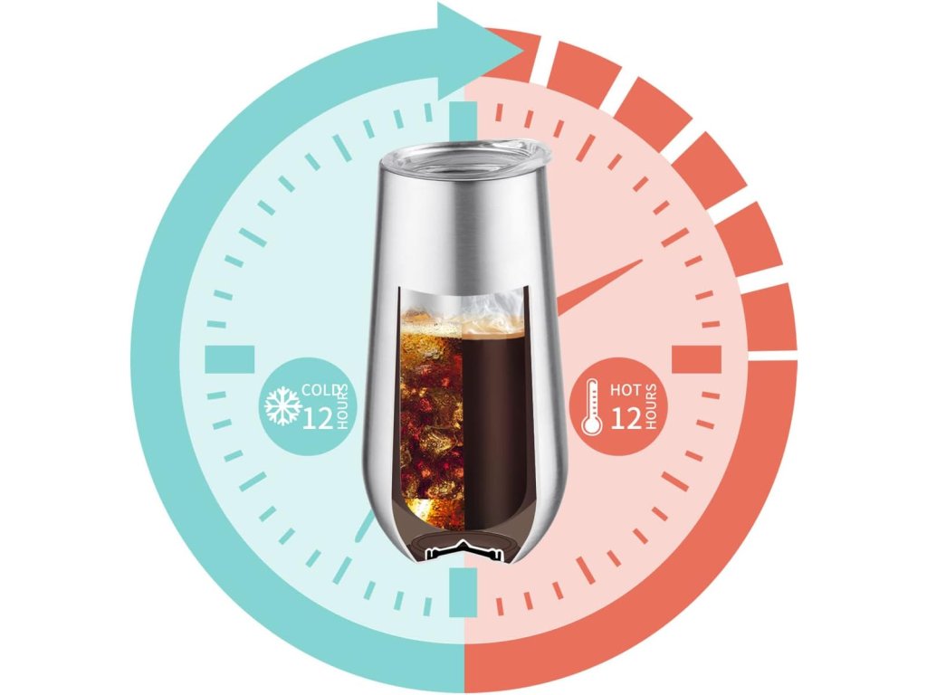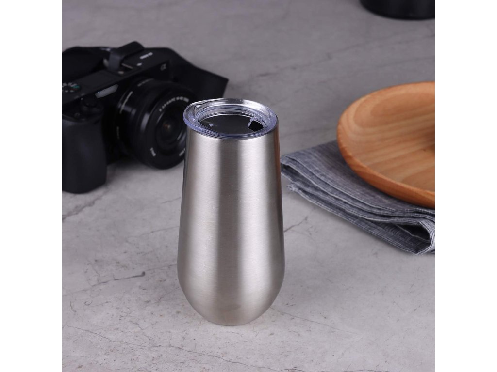 Sivaphe nerezové sklenice na šampaňské 2ks termo stříbrné 180ml s víčkem