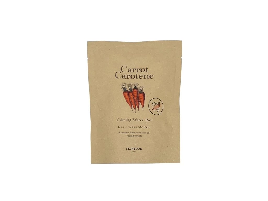 Skinfood Carrot Carotene jsou hydratační polštářky na obličej, které zklidňují a vyživují pokožku. Balení obsahuje 30 polštářků (135 g).