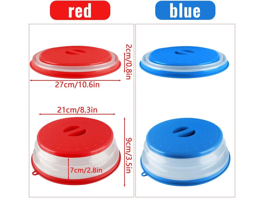Hlavní funkcí krytu je zabránit stříkání ohřívaných potravin uvnitř mikrovlnné trouby, čímž udrží vaši troubu čistou. Díky skládacímu designu můžete snadno nastavit výšku krytu na cca 2 cm ve složeném stavu (26,5 x 2 cm) pro úsporu místa při skladování. V rozloženém stavu má rozměry 26,5 x 8 cm.