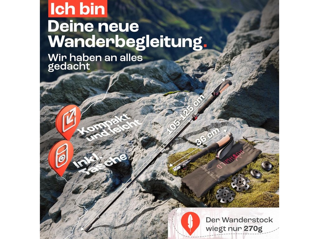 Trekingové hole Rothwild Luchs jsou ideální volbou pro ženy i muže, kteří hledají lehké, skladné a spolehlivé hole na turistiku a trekking. Díky možnosti složení na pouhých 36 cm se snadno vejdou do každého batohu. Praktické nastavení výšky v rozmezí 105–125 cm zaručuje optimální délku pro různé výšky postavy. Ergonomická rukojeť z pravého přírodního korku skvěle absorbuje vlhkost, poskytuje jistý a pohodlný úchop a zabraňuje vzniku puchýřů. Prodloužená část rukojeti oceníte zejména při stoupání. Vysoce kvalitní hroty z karbidu wolframu jsou odolné proti opotřebení a zajistí vám stabilitu na jakémkoli povrchu. Součástí balení jsou i různé nástavce pro chůzi po asfaltu, lesních cestách, sněhu a dalším terénu. Díky kombinaci hliníku 7075 jsou tyto skládací hole velmi lehké, ale zároveň extrémně odolné, což je ideální pro dlouhé výlety a náročné trekingové túry.
