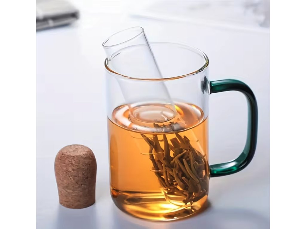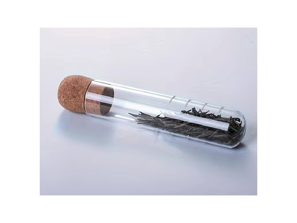 Skleněný čajový infuzér ve tvaru zkumavky s korkovou zátkou