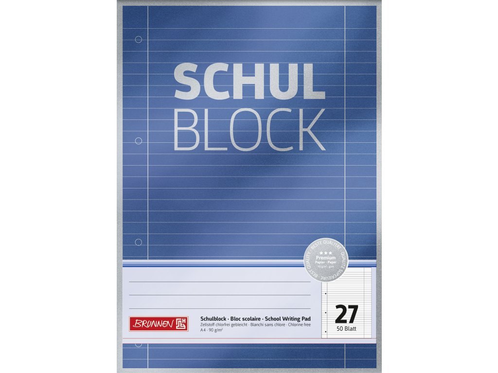 Tento prémiový školní blok formátu A4 obsahuje 50 listů papíru o gramáži 90 g/m². Blok je děrovaný se čtyřmi otvory a má linkování s 27 řádky, včetně vnitřních a vnějších okrajů. Je navržen pro náročné studenty.