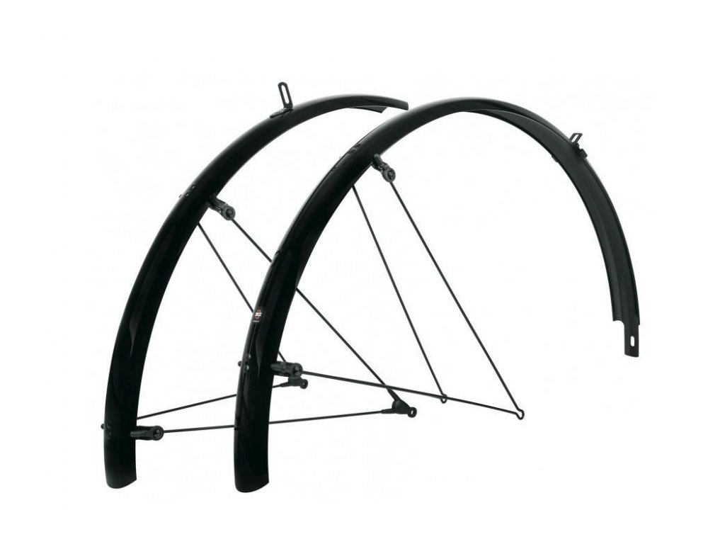 Technické parametry: Značka: SKS Model: Bluemels Basic Barva: Černá Velikost kola: 28 palců Šířka blatníku: 45 mm Materiál: Hliníkovo plastová sendvičová konstrukce Bezpečnost: Bezpečnostní systém ESC resp ASR Součást balení: Sada vzpěr pevný můstek z nerezové oceli montážní materiál Vlastnosti: Robustní tuhé odolné proti korozi