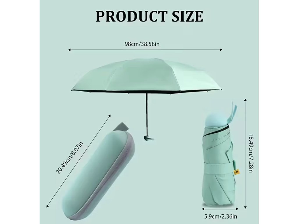 Unikátním prvkem je pevné ochranné pouzdro ve tvaru kapsle, které chrání obsah vaší tašky nebo batohu před vlhkostí po použití deštníku. Díky svým minimálním rozměrům se snadno vejde do kapsy, kabelky nebo přihrádky v autě. Moderní design v blankytně modré barvě a praktické provedení dělají z tohoto doplňku vhodný dárek k narozeninám, svátku nebo jiným příležitostem.