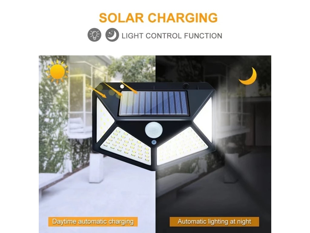 Solární světla pohybový senzor 100 LED 3 režimy venkovní zahrada 4ks
