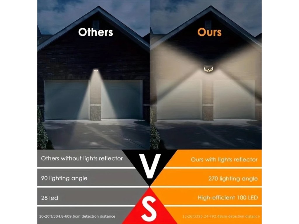 Vysoká svítivost: Každé světlo je vybaveno 100 jasnými LED diodami, které zajišťují dostatečné osvětlení i ve tmě.