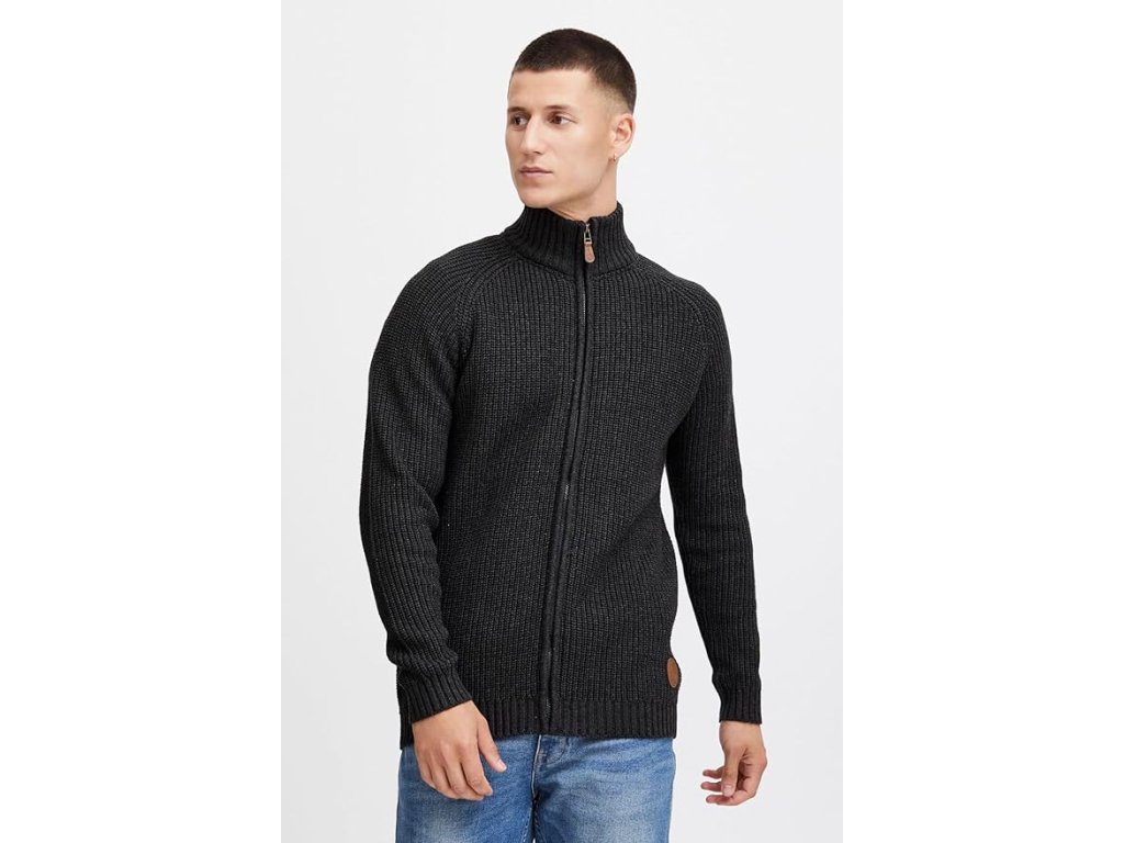 Solid SDXenos Pánský pletený kardigan – tmavě šedý melanž, vel. XL