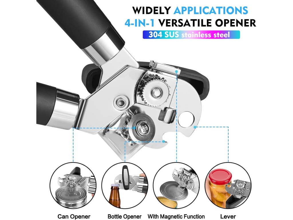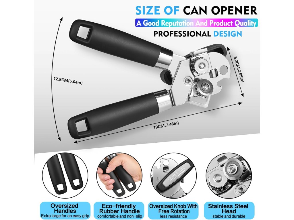 SOVARCATE multifunkční otvírák na konzervy s magnetem černý