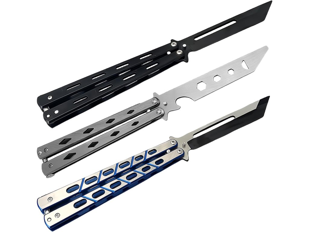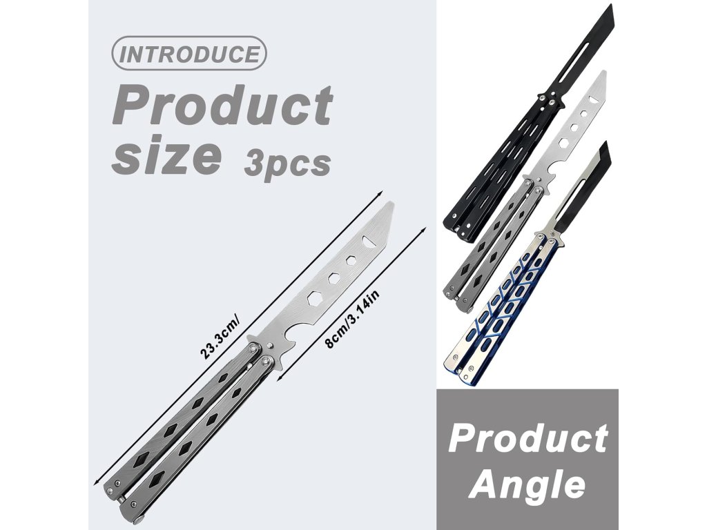 Bezpečné procvičování triků: Čepel těchto trikových nožů je neostřená a nemá žádné ostré hrany, takže je velmi vhodná pro začátečníky. S těmito motýlími noži se při cvičení vyhnete zbytečným poraněním rukou a můžete bezpečně procvičovat různé pohyby a otočky. Jedná se o speciální tupý nůž určený výhradně pro nácvik, nikoli pro řezání.