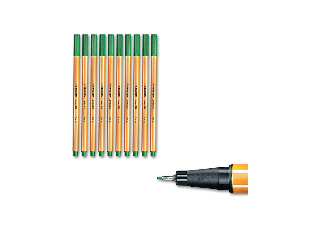 Tato sada obsahuje 10 zelených finelinerů Stabilo Point 88 se šířkou stopy 0,4 mm.