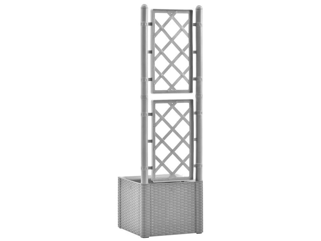 Tento samozavlažovací truhlík kombinuje moderní design a praktickou funkčnost pro optimální pěstování rostlin. Jeho design s texturou pravého ratanu v elegantní šedé barvě se snadno hodí na terasu balkon i do interiéru. Samozavlažovací systém Unikátní systém s ukazatelem hladiny vody zajišťuje rostlinám ideální a konstantní zálivku čímž předchází jak nedostatku tak přebytku vody. To podporuje správný růst a plodnost rostlin. Materiál a Použití Vyrobeno z odolného polypropylenu který odolává vnějším podmínkám a je vhodný pro vnitřní i venkovní použití. Vyvýšený Záhon a Mřížka S rozměry 43 x 43 x 142 cm (výška včetně mřížky) a objemem 35 l poskytuje dostatek místa pro široké spektrum rostlin. Integrovaná mřížka je praktická pro pěstování popínavých rostlin. Všestrannost Ideální pro pěstování okrasných rostlin letniček bylinek trvalek cibulovin a dokonce i menších keřů drobného ovoce a zeleniny.
