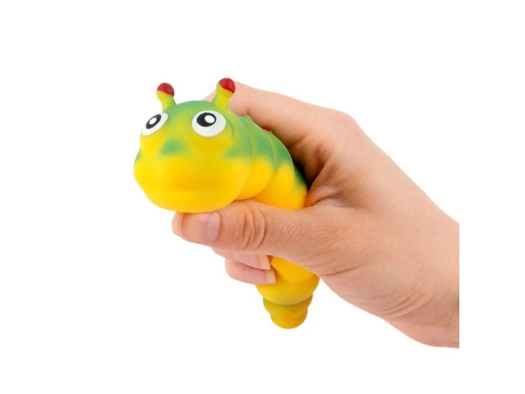 ato stlačitelná hračka je vyrobena z pružného materiálu. Její tvar housenky a výrazné barvy stimulují smysly. Je ideální pro uvolnění napětí a pomáhá při relaxaci. Díky své velikosti se snadno vejde do ruky a můžete si ji vzít kamkoliv s sebou.