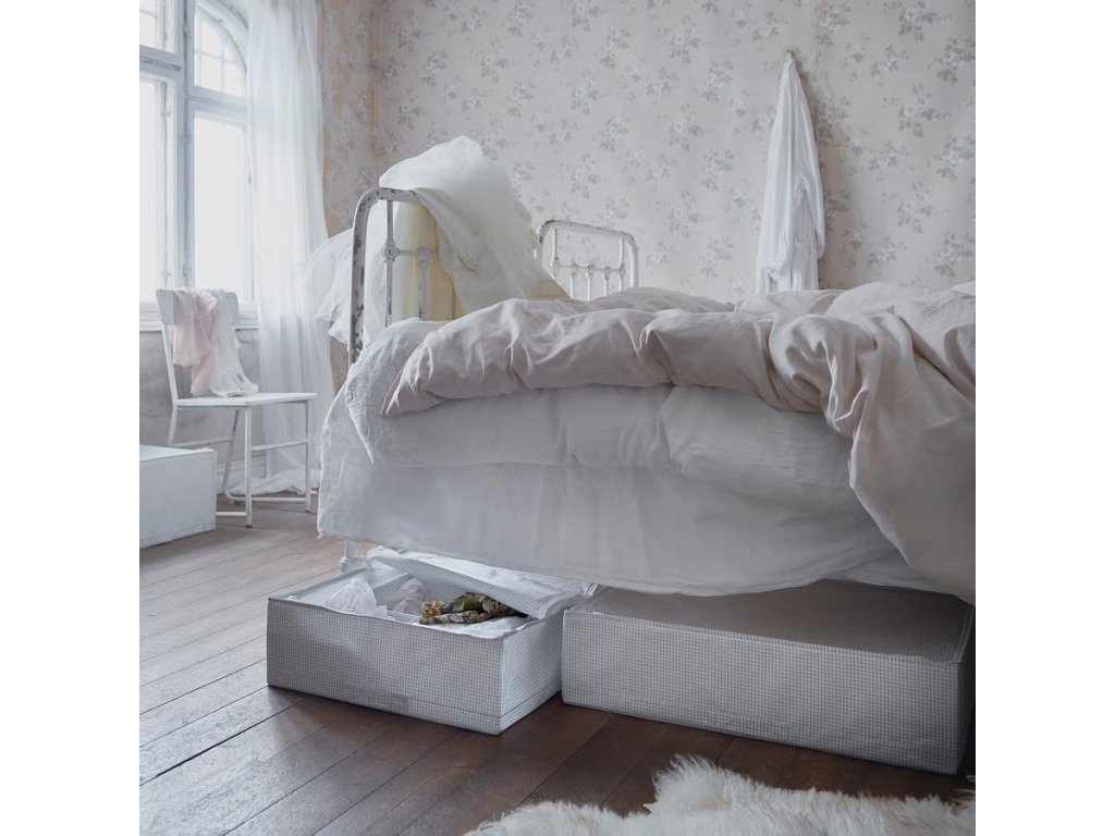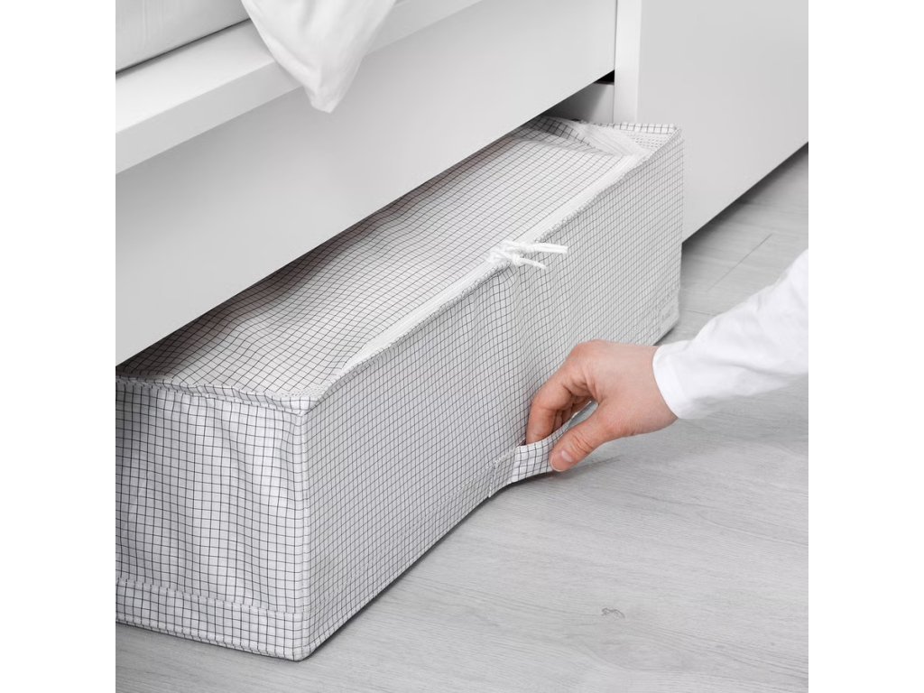 Úložný box STUK je navržen tak, aby se snadno vešel do šatní skříně nebo ho bylo možné zasunout pod postel, což z něj činí ideální volbu pro uspořádání prostoru.