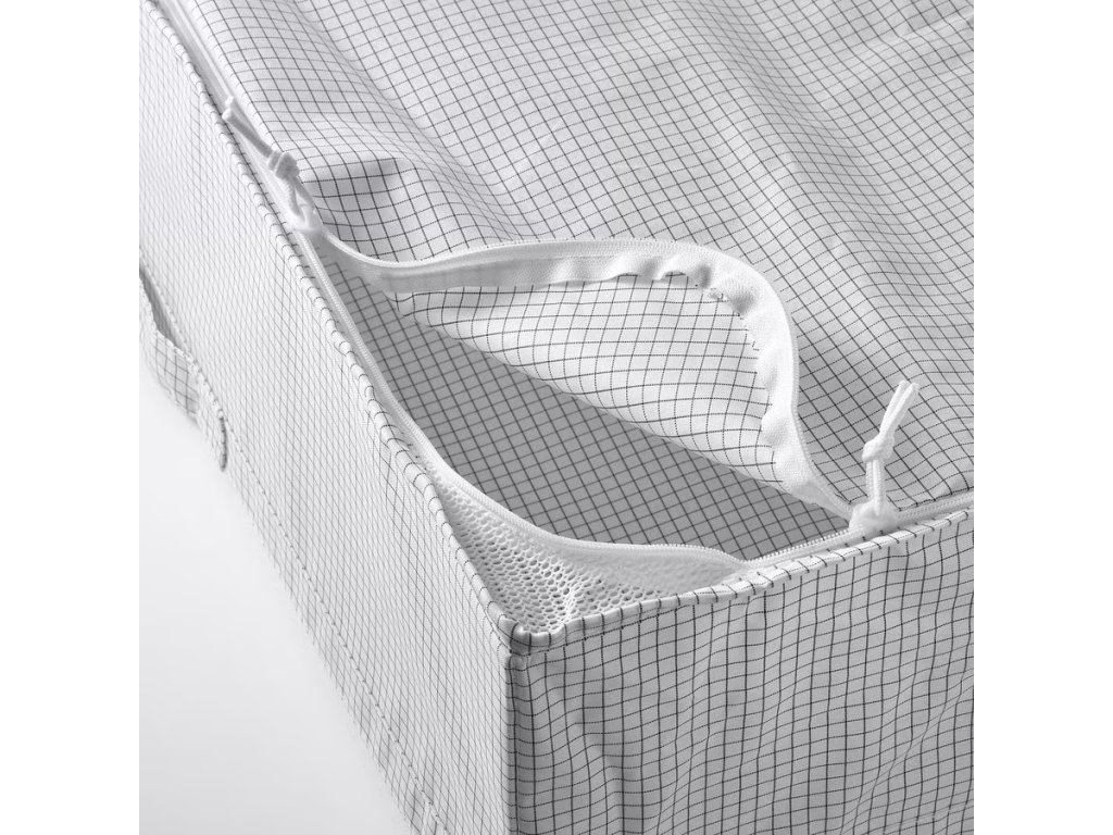 Úložný box STUK v bílošedé barvě o rozměrech 71x51x18 cm je praktické řešení pro ukládání sezónního oblečení, přikrývek nebo textilií. Chrání věci před prachem a špínou a díky ventilačním síťkám udržuje obsah svěží.