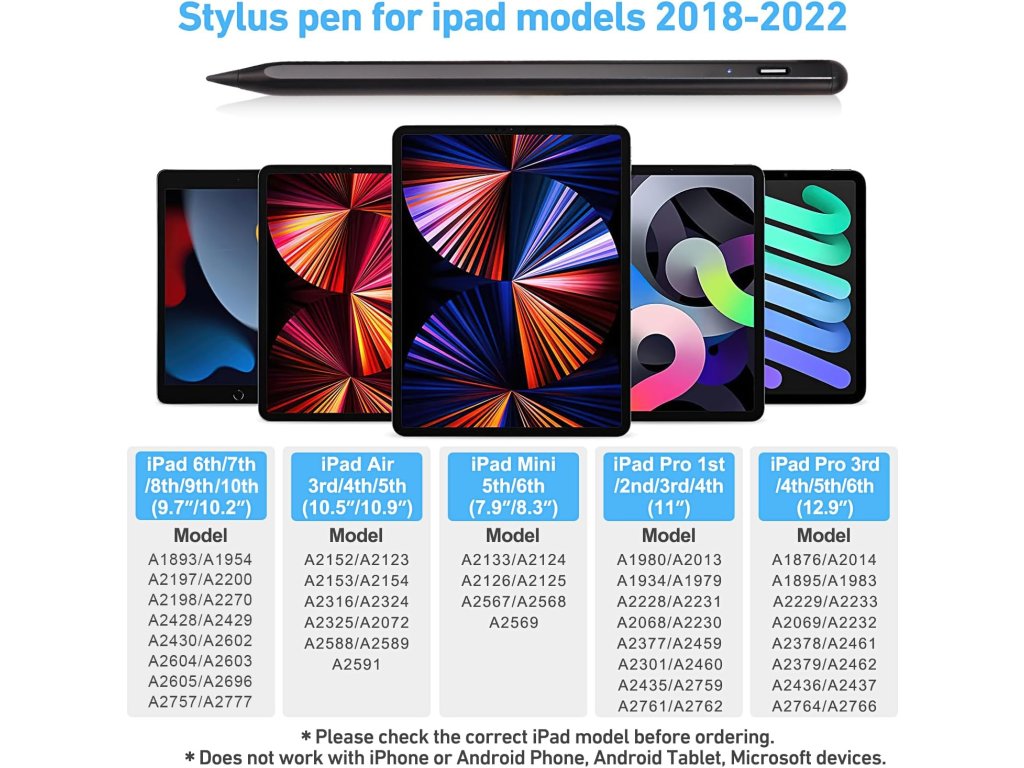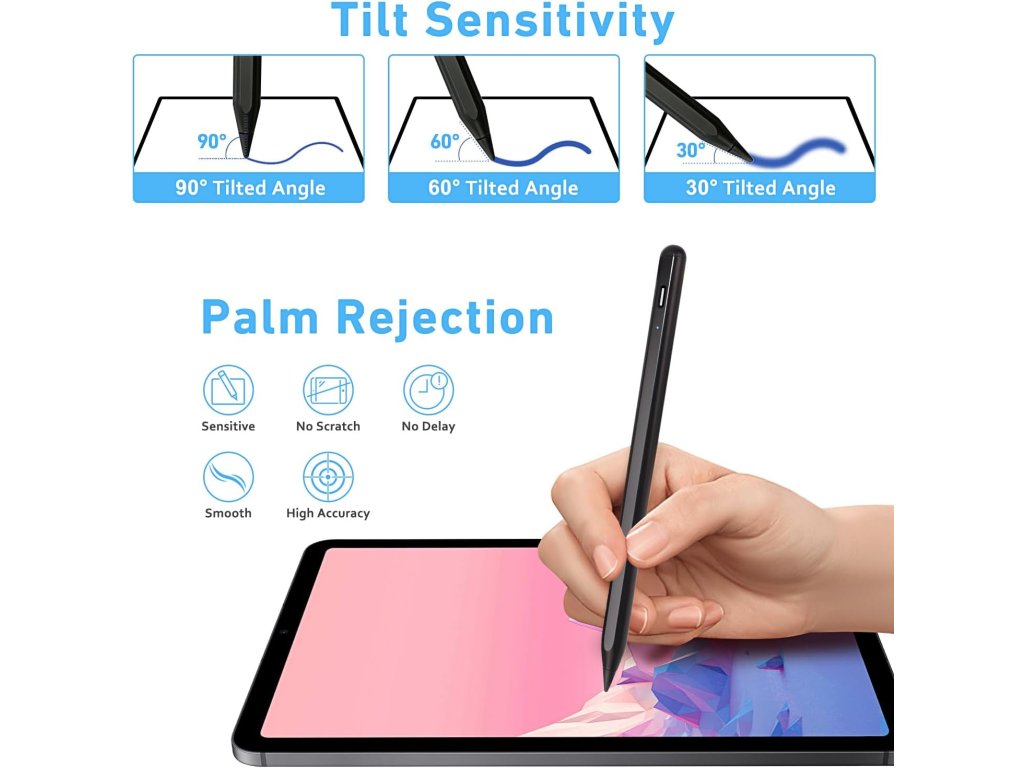 Aktivní stylus pro iPad (2018-2022) s rychlým nabíjením, odmítnutím dlaně a senzorem náklonu.