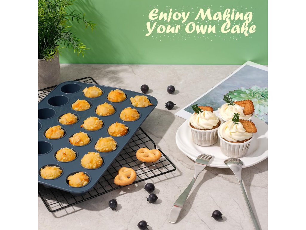 Vylepšený design a stabilita: Každá forma měří 34 x 23 x 2,5 cm, což je větší než mnoho jiných forem na trhu. Díky zesílenému propojení mezi košíčky na zadní straně jsou formy stabilnější a nepodléhají změkčení ani deformaci, což zaručuje konzistentní výsledky pečení.
