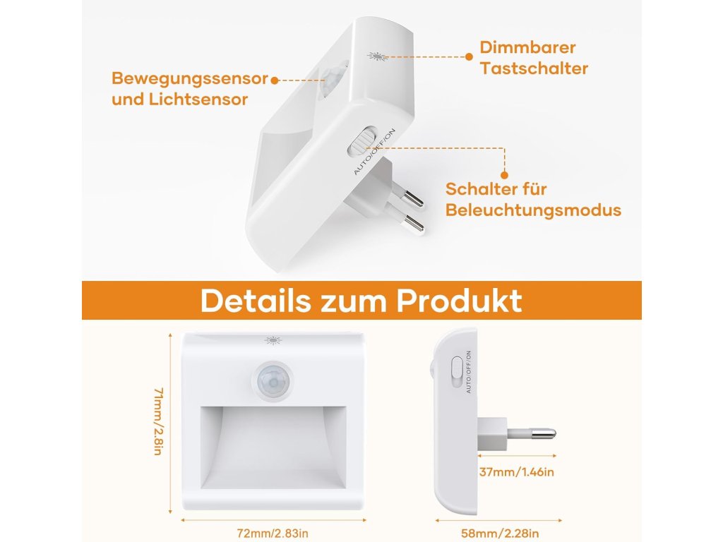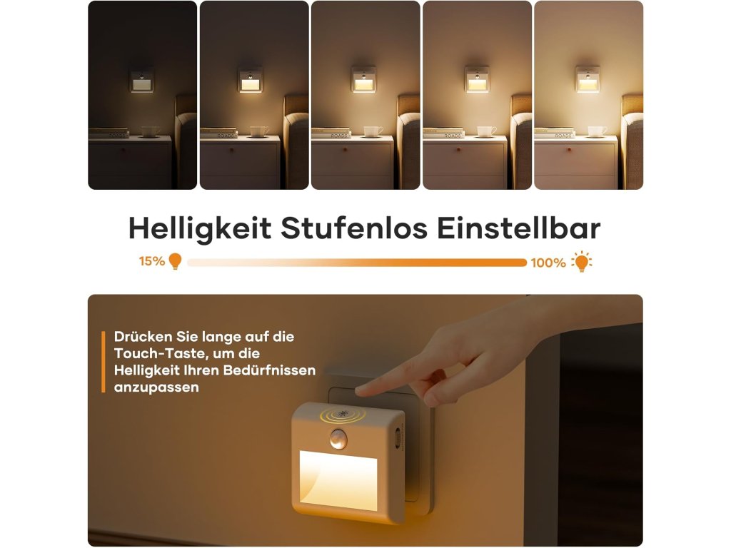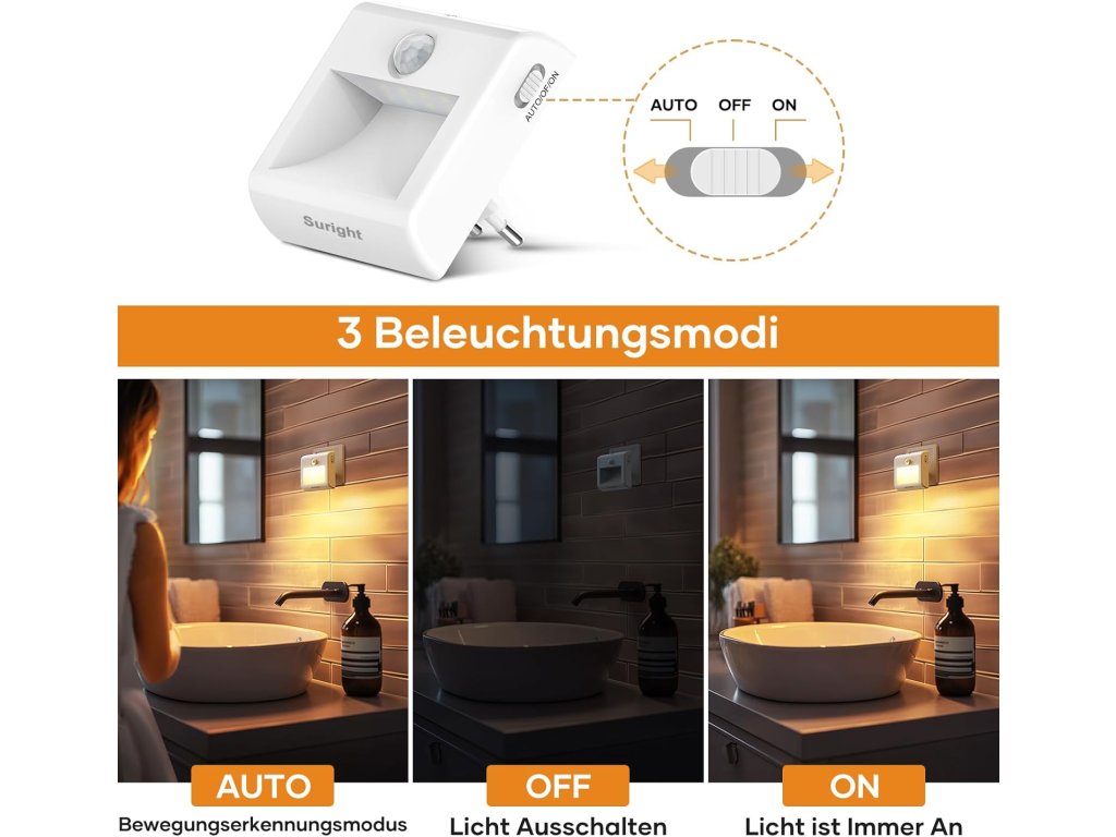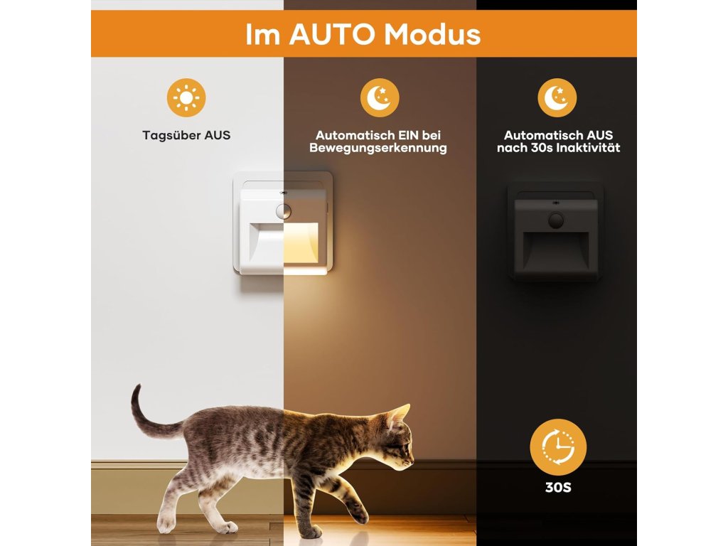 Osvětlení disponuje třemi provozními režimy, které umožňují trvalé svícení, úplné vypnutí nebo automatický režim reagující na pohyb v dosahu 4 metrů. Díky funkci plynulého stmívání lze jas nastavit v rozsahu od 15 % do 100 %, takže intenzita světla vždy odpovídá konkrétní situaci. Design směřující světelný tok směrem dolů zabraňuje nepříjemnému oslnění a chrání oči, což přispívá ke klidnému spánku i při umístění v blízkosti lůžka. S nízkou spotřebou pouze 1,5 W a automatickým vypnutím po 30 sekundách nečinnosti se jedná o energeticky úsporný doplněk, který zvyšuje komfort a bezpečí v dětských pokojích, kuchyních i technických prostorech.